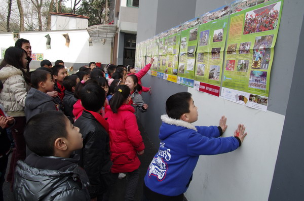 座落在杭州西子湖畔的西湖小学校园内,学校也在走廊、操场边设置了多个挂图点,并组织学生观看。学校教导处的张冠军老师介绍道,杭州西湖小学是全国小学德育试验学校、浙江省文明学校,世博会教育挂图把世博又带回了学校,对于经历过上海世博的小学生来说,会成为他们成长历程中一次重要、精彩的记忆。